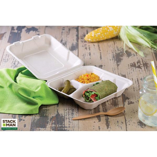 Sugarcane Clamshell Compostable Food Containers With 3 Compartment